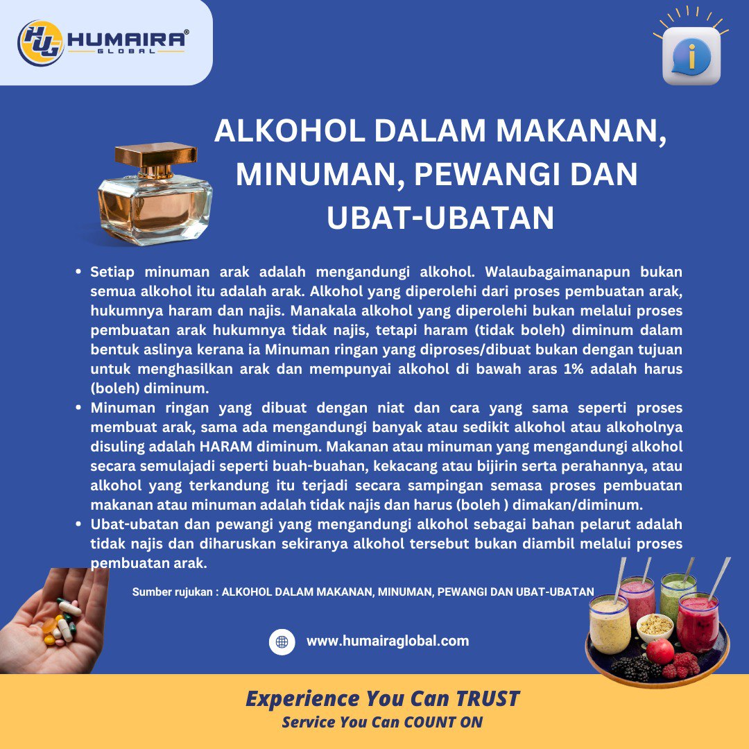 ALKOHOL DALAM MAKANAN, MINUMAN, PEWANGI DAN UBAT-UBATAN Muzakarah Jawatankuasa Fatwa Majlis Kebangsaan Bagi Hal Ehwal Ugama Islam Malaysia memutuskan setiap minuman arak ada kandungan ALKOHOL tetapi BUKAN SEMUA ALKOHOL…